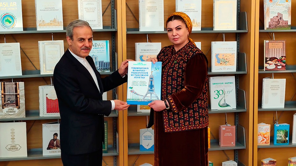 دیدار و گفتگوی سفیر جمهوری اسلامی ایران با رئیس کتابخانه دولتی ترکمنستان