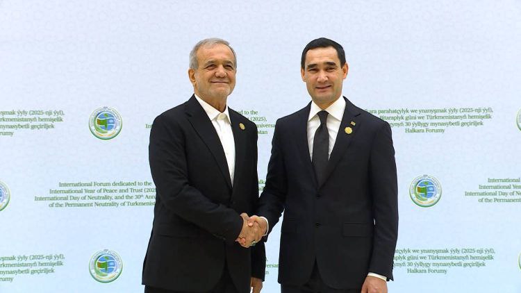 Eýran Yslam Respublikasynyň prezidenti j-p doktor Pezeşkian bilen Türkmenistanyň prezidenti j-p Serdar Berdimuhamedowyň
