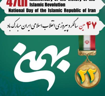 22-nji bähmän - Eýranyň Yslam Rewolýusiýasynyň ýeňşiniň we milletiň garaşsyzlyk azatlyk we Yslam Respublikasy üçin erk-isleginiň amala aşmagynyň 47 ýyllygy bilen gutlaýarys.