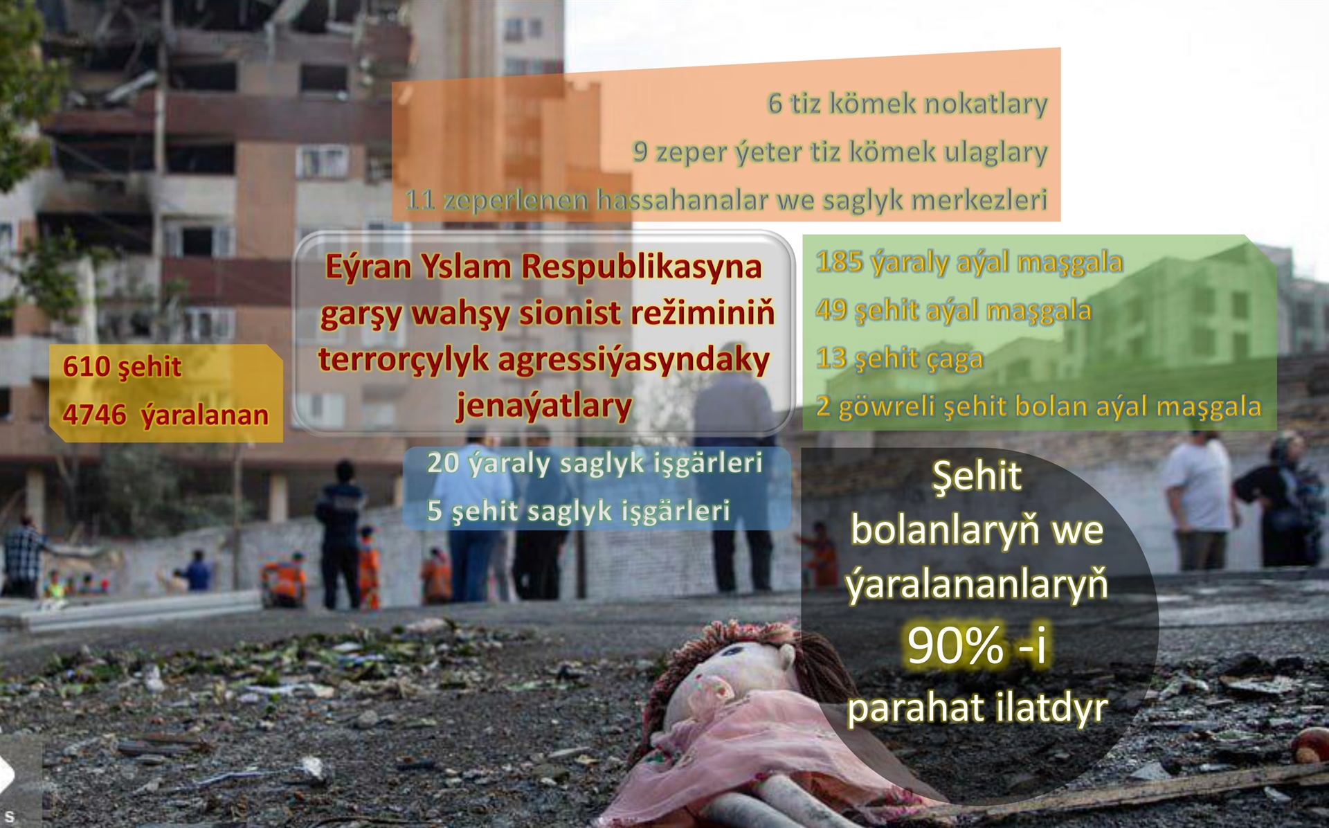 Wahşy sionist režiminiň Eýran Yslam Respublikasyna garşy terrorçylyk agressiýasyndaky jenaýatlary