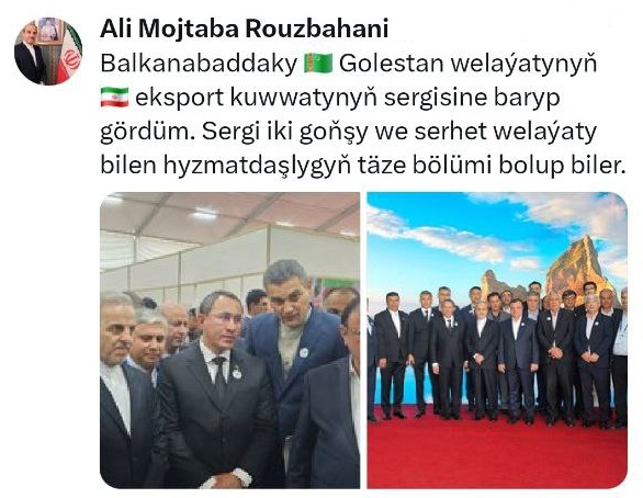 BalkanabaddakyTürkmenistanyň olestan welaýatynyň Eýranyň eksport kuwwatynyň sergisine baryp gördüm. Sergi iki goňşy we serhet welaýaty bilen hyzmatdaşlygyň täze bölümi bolup biler.